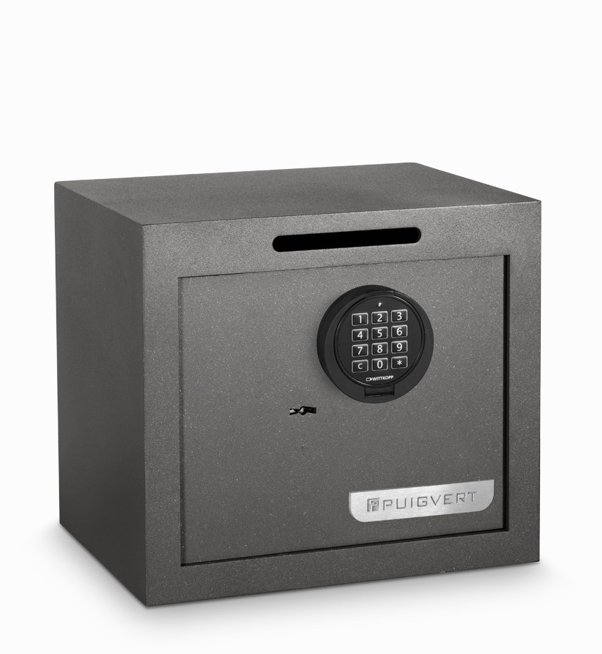 Caja fuerte con buzon de recaudacion Puig-01. Electronico y llave , Sistema idoneo para proteger el efectivo en establecimientos comerciales, locales de hostelería y puntos de venta en general.