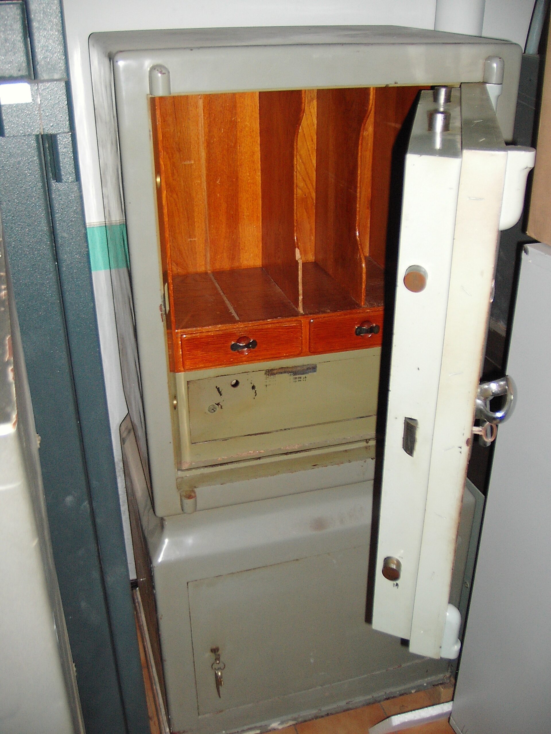 El cuerpo superior y la puerta esta construido en su totalidad con dos chapas de acero a modo de sandwich, albergando entre ellas blindaje (hormigon con mucha piedra) espesor puerta de 35mm, cuerpo de 60mm.