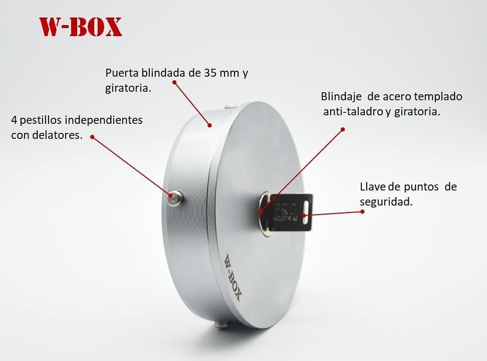 Caja fuerte / caja de seguridad W-BOX 05 Puerta circular,de gran tamaño muy útil para guardar objetos de valor como joyas y dinero.