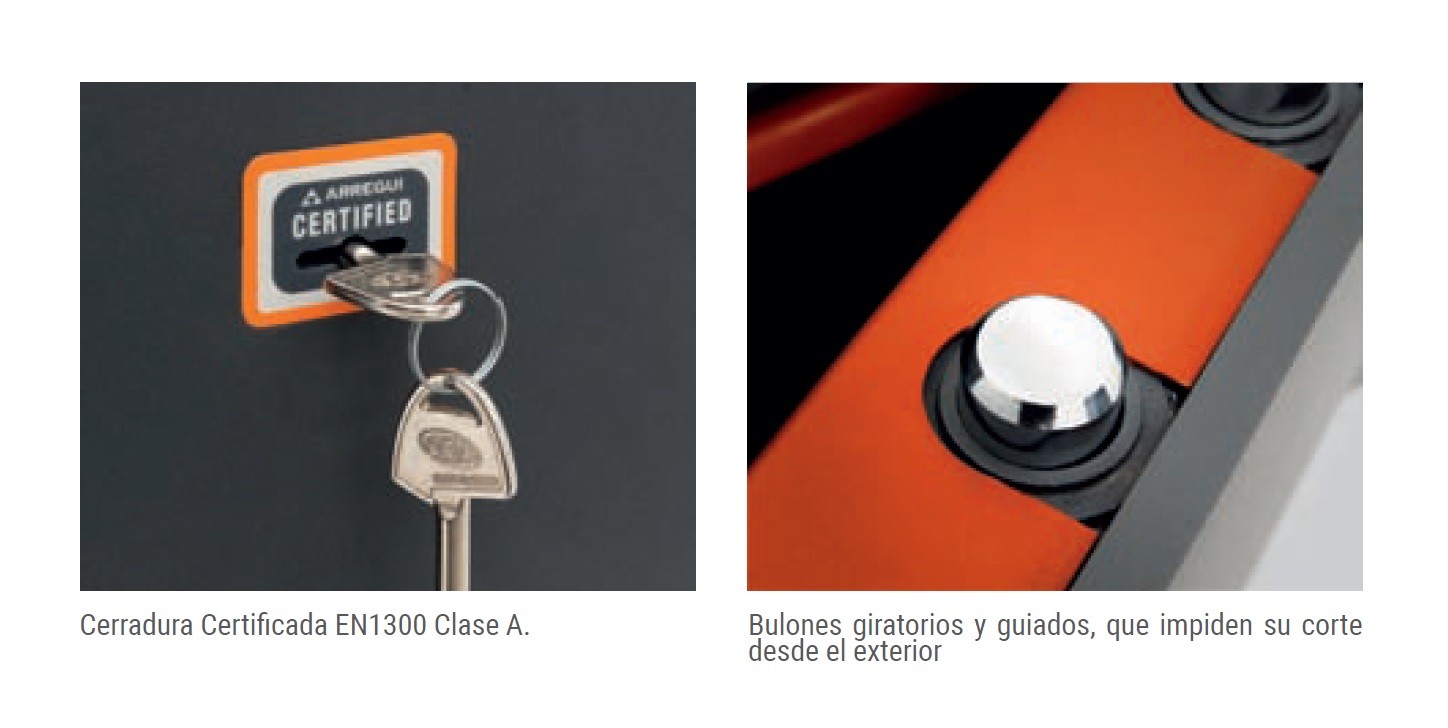 Cerradura de llave de gorjas de doble pala. Homologada EN 1300 clase A / VdS Class 1.