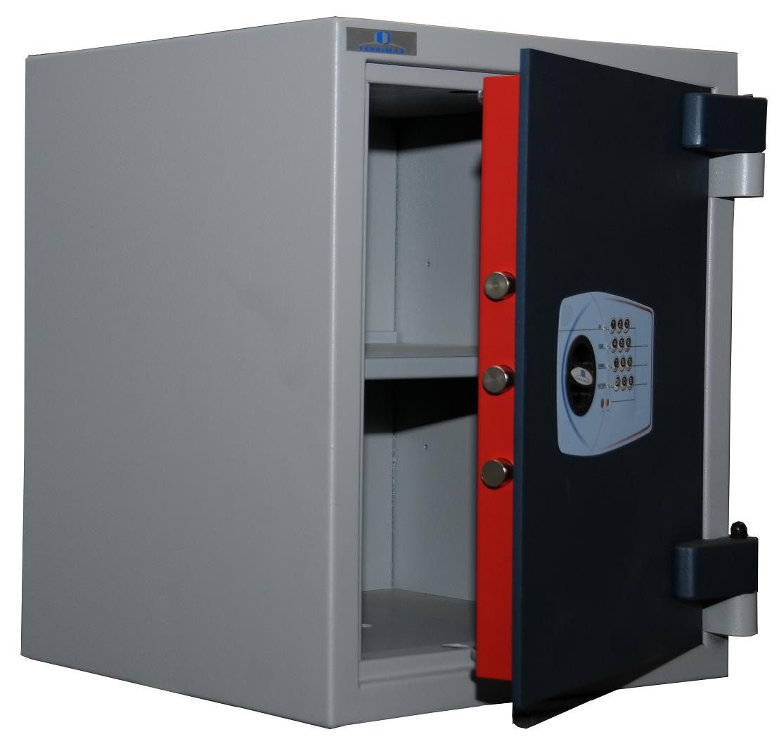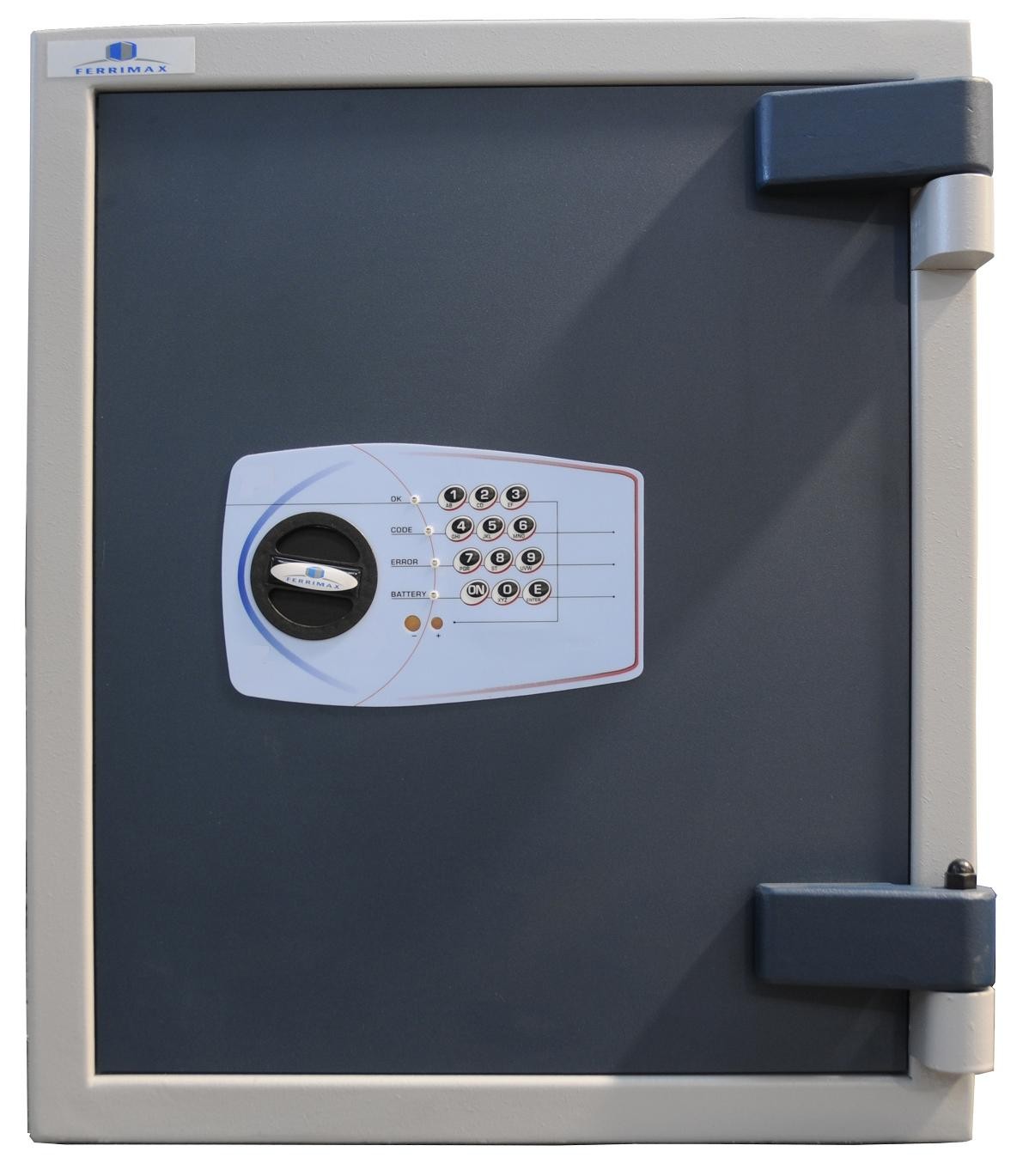 -Todas las superficies internas y externas de nuestras cajas fuertes están protegidas con imprimación y pintura. Puerta color azul, cuerpo color gris claro (RAL 7035)