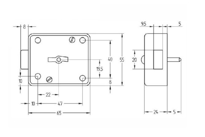 Cerradura de gorjas Aga 244 de llave de doble paleton, utilizada en cajas fuertes de las series antiguas 2750, 7500 y Gasolinera de ARFE.