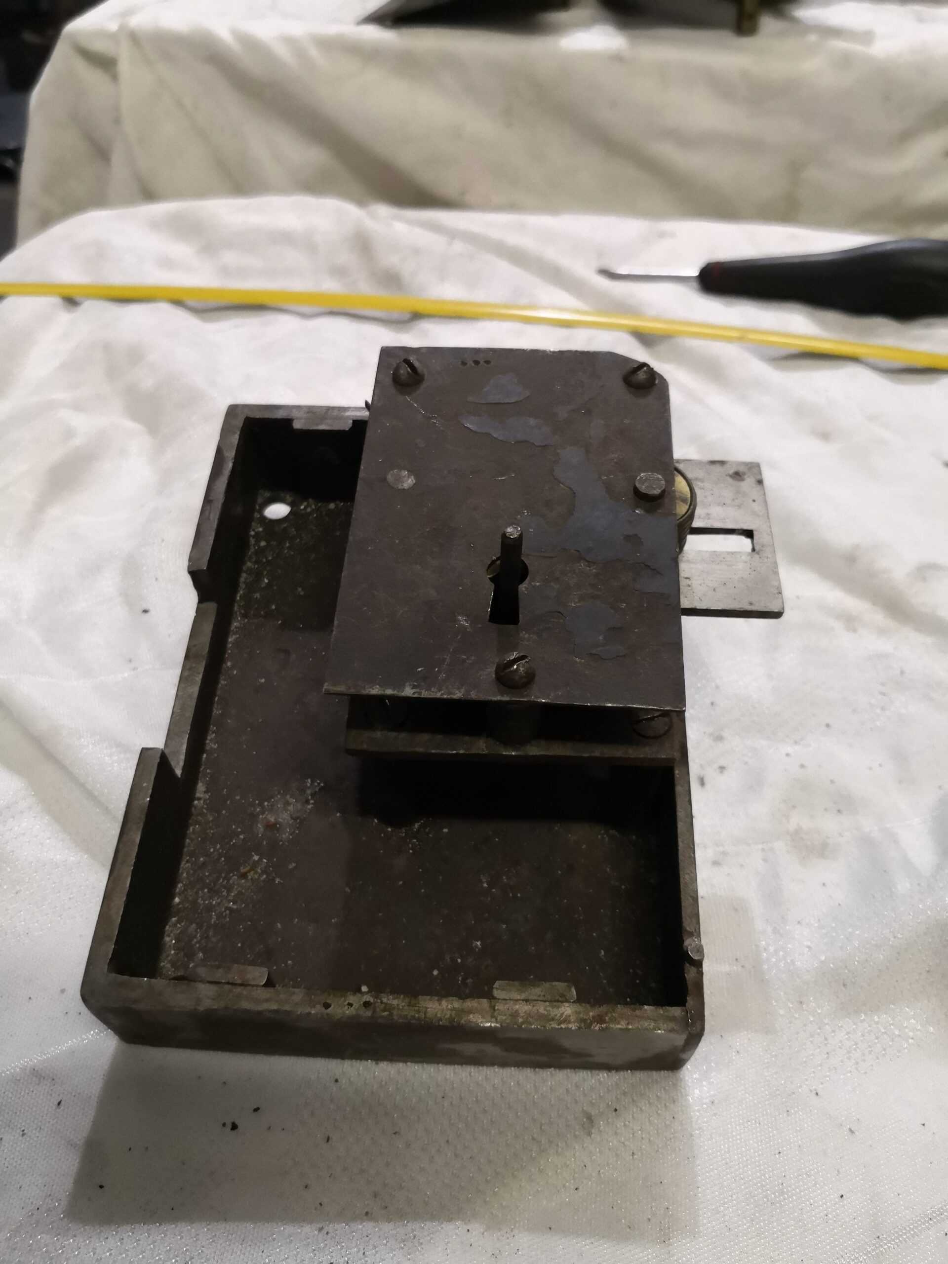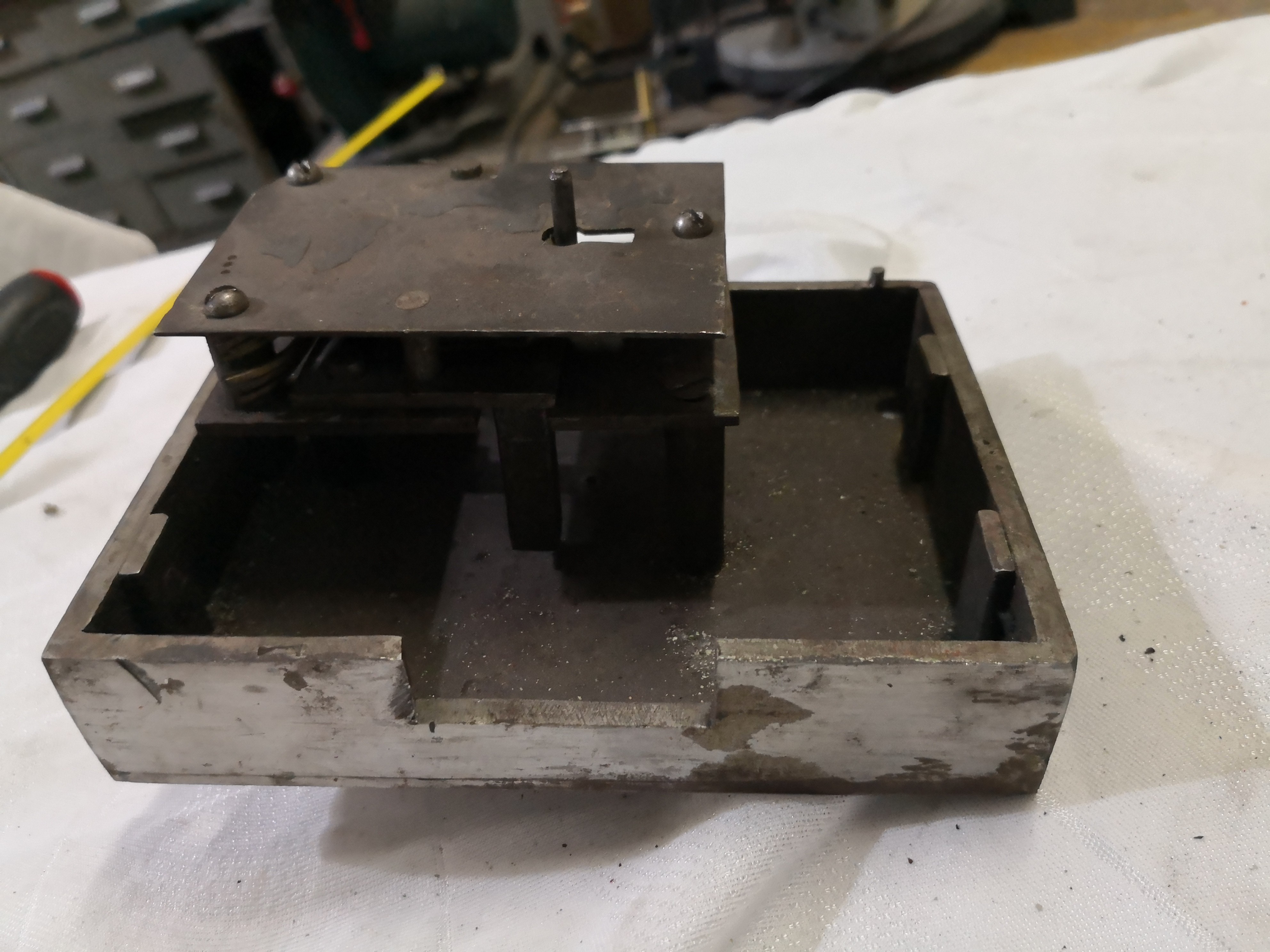 Cerradura de 1 pala, utilizada en las cajas antiguas, con mecanismos vistos,