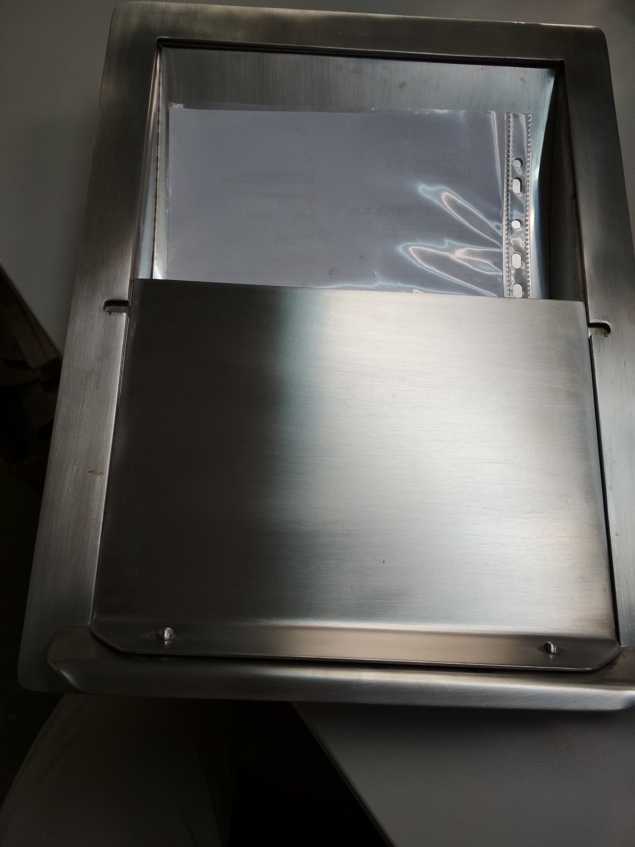 PASAMONEDAS CON TAPA GRANDE PARA EMPOTRAR ACERO INOXIDABLE