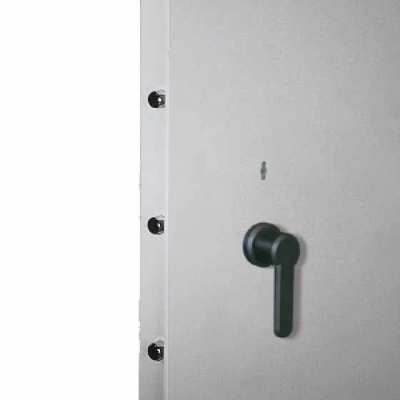 -Batiente anti-extracción en el lateral de bisagras de la puerta, engarzado en el marco.